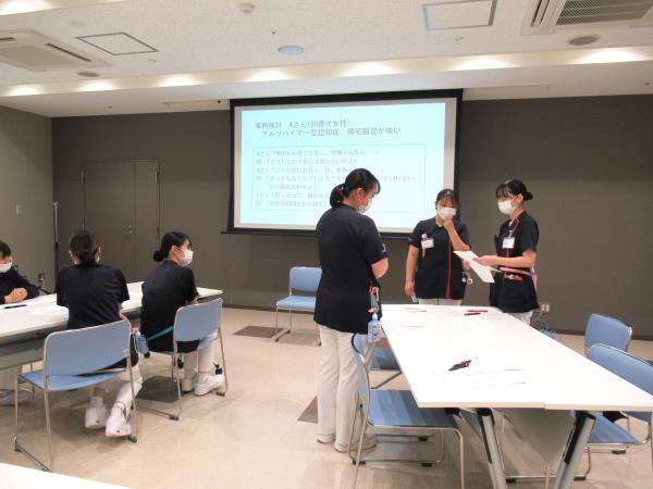 ◆新人看護師リフレッシュ研修 令和7年9月19日(金) 高岡市にある鋳物メーカーの能作さんで新人看護師を対象をしたリフレッシュ研修を開催しました。今回は『鋳物製作体験』です。うまく形になるか少しドキドキしながらも楽しく作製しました。仕事から一時的に離れて心もからだもリフレッシュでき、明日への活力となるよい時間になりました。 ◆高齢者の看護(認知症・せん妄) 令和7年10月9日(木) 当院の認知症看護認定看護師を講師に迎え、認知症患者さんに対するコミュニケーション方法の講義を受けました。できるだけ相手の感情に寄り添い、表情をしっかり見て、相手が今どう感じているかを考え、接することが大切であることを学びました。 実演発表