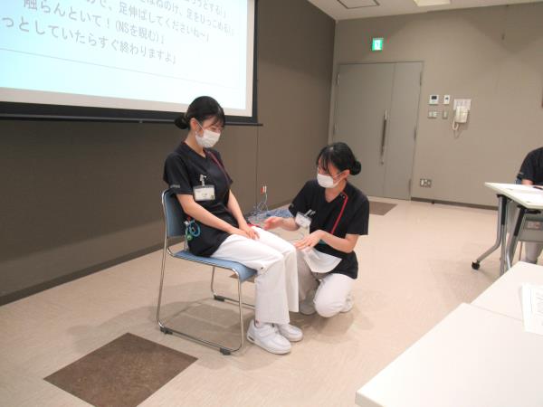 ◆フィジカルアセスメント研修 令和7年6月13日(金) 看護師が行うフィジカルアセスメントの目的は、根拠に基づく看護ケアを行うということと、実施した看護ケアを評価するということです。患者さんが安全・安楽に療養生活を送るためには、看護師がフィジカルアセスメント、看護介入をいかに的確に実施できるかということが大きく影響するということを学びました。